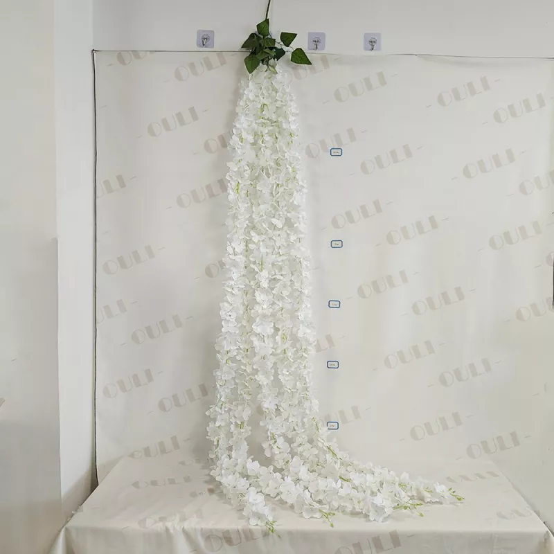 Ang bawat nakabitin na wisteria artipisyal na bulaklak ay may limang wisteria vines, na makabuluhang pagtaas ng density ng dekorasyon.